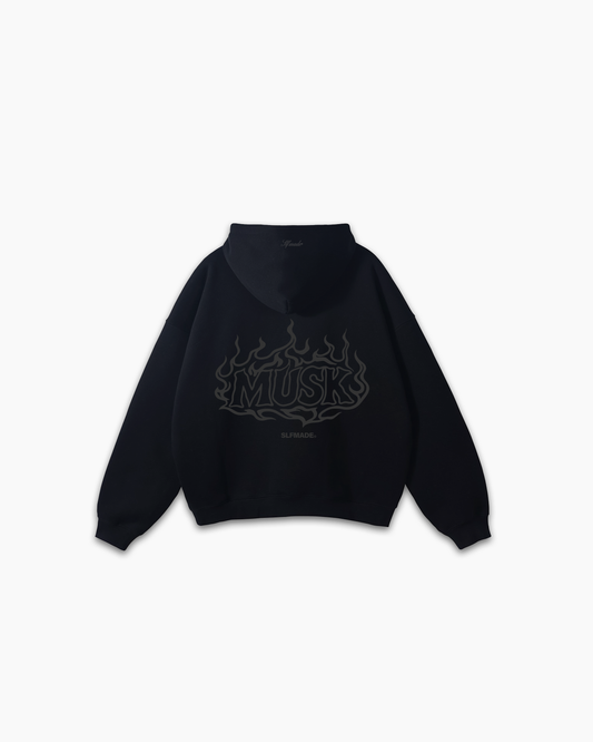 SLFMADE X MUSKI 'FLAME' BLACK HOODIE